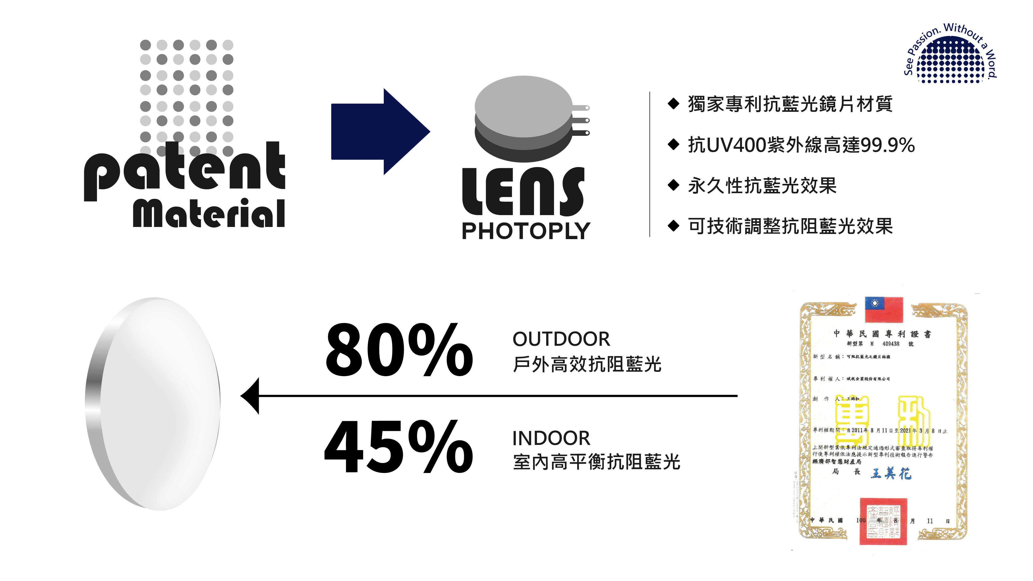 ① 優異阻隔紅外線熱能效果 ② 抗藍光刺眼光害 ③ 100%阻隔紫外線 ④高深淺對比視覺