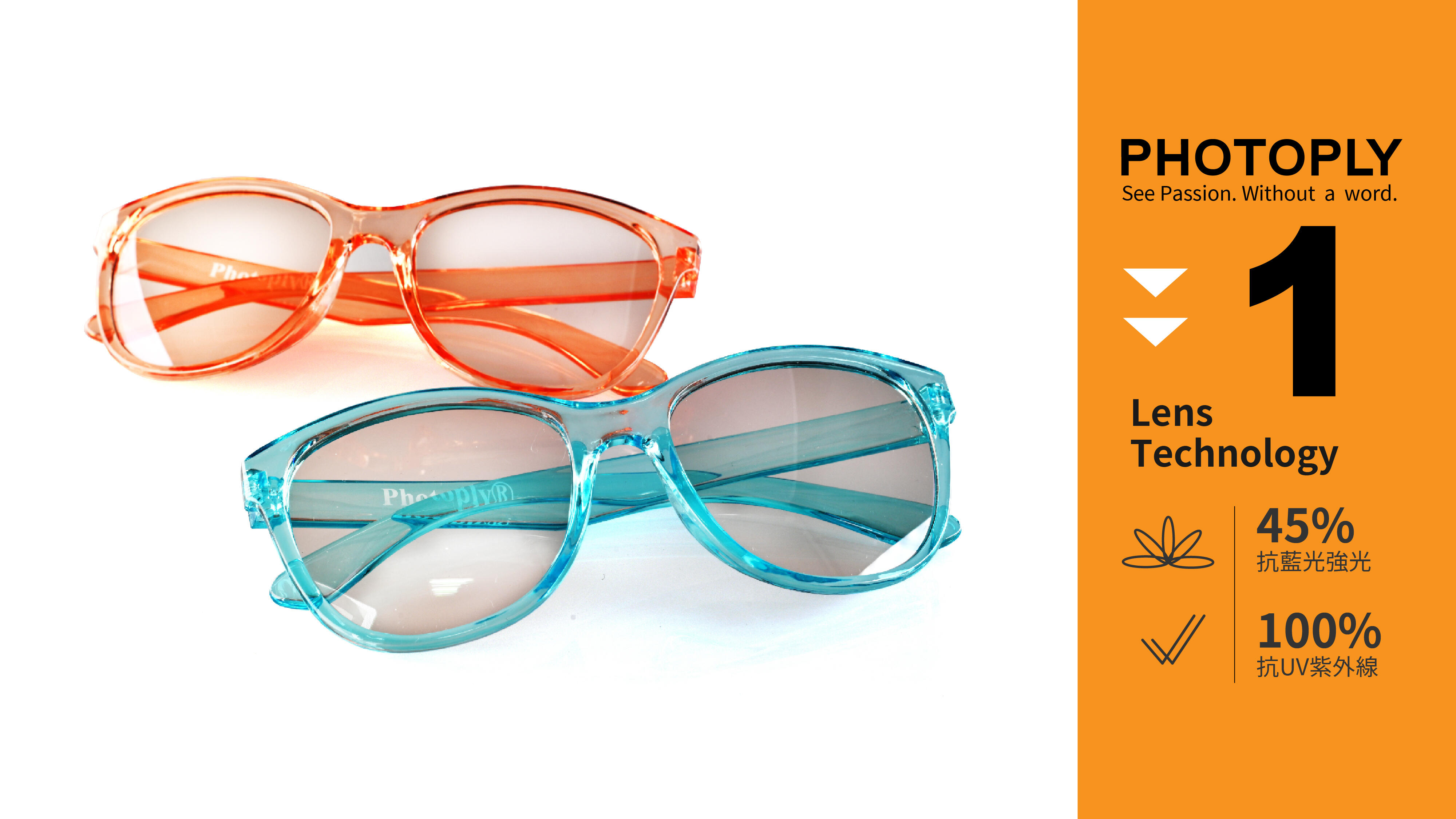 ①抗藍光刺眼光害 ②100%阻隔紫外線 ③室內視覺色彩平衡