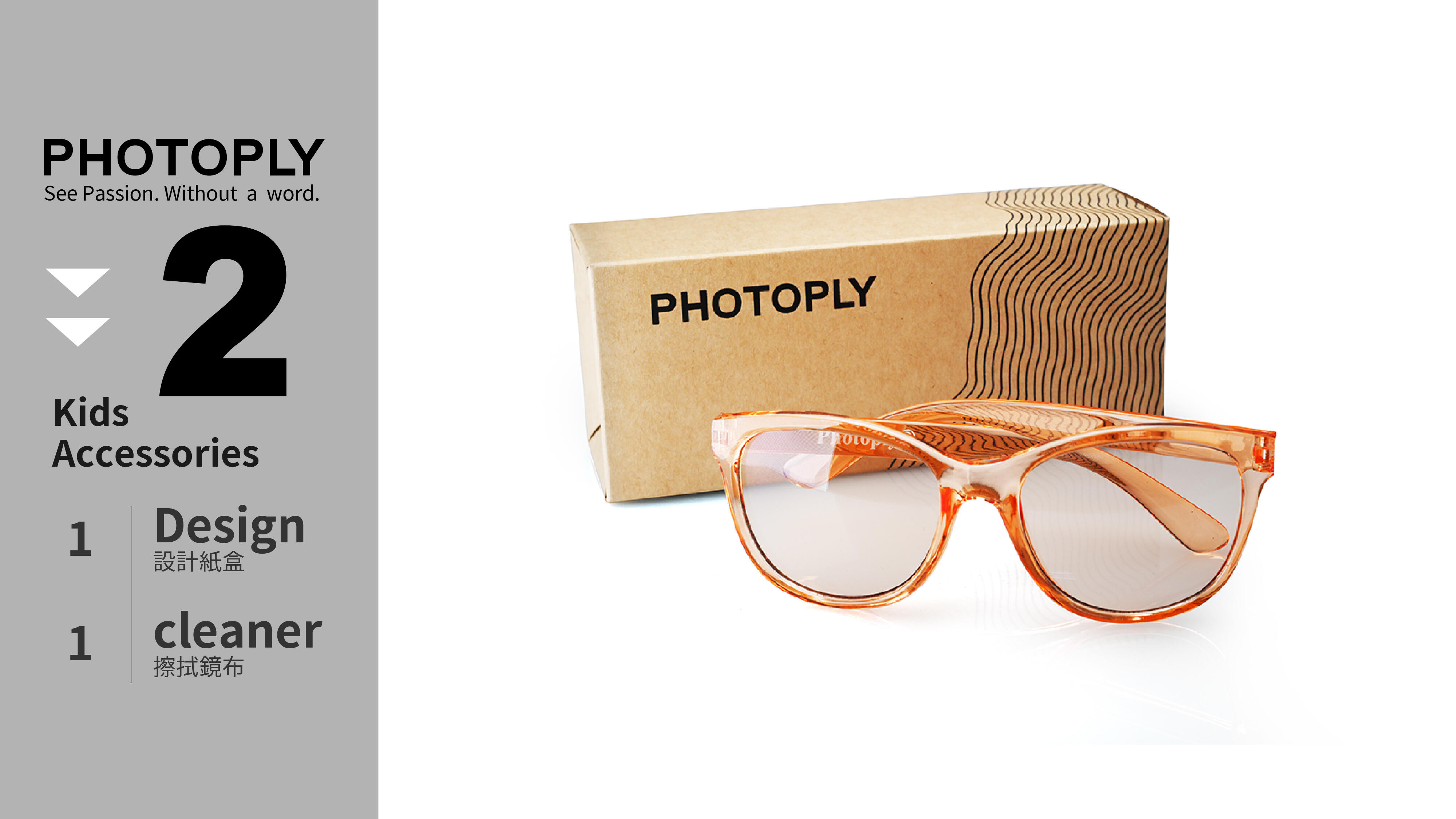 包裝附件:設計包裝盒 * 1 、拭鏡布 *1